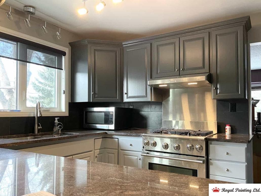 Simply empty all items from your cabinets and store them safely away from the work area. Royal Painting will handle all door removal and hardware detachment – no need for you to touch anything else. Pro tip: Cover your countertops with plastic sheeting if you want extra protection, but we’ll provide full coverage.